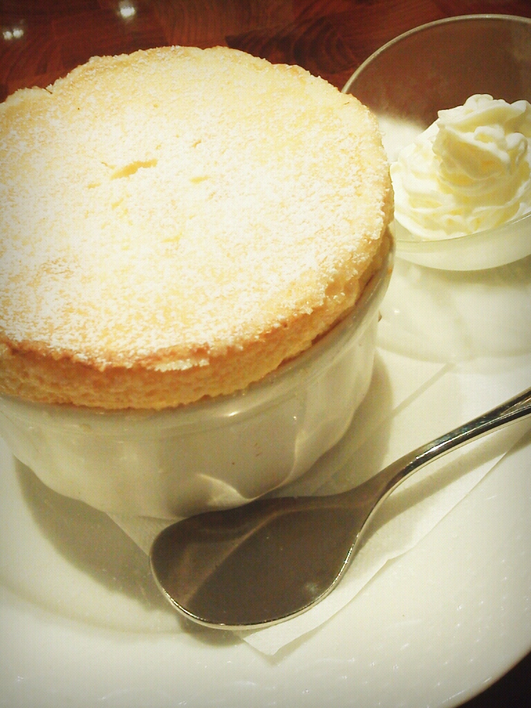 通りがけに見つけた星乃珈琲店で、釜焼きスフレを頂きました。