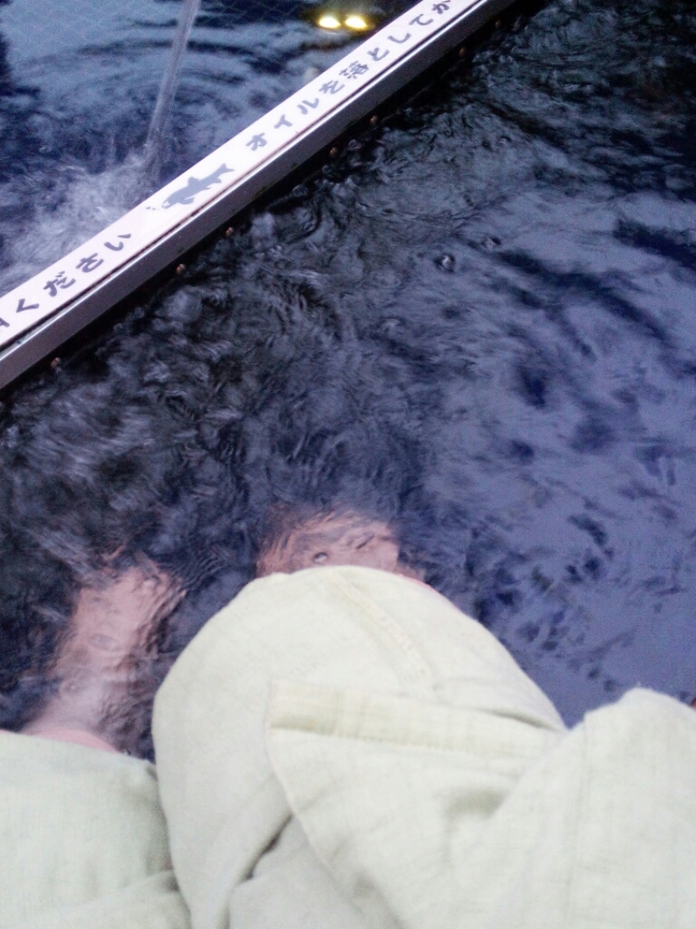 他所では有料なことが多いドクターフィッシュも入り放題(黄緑のは館内着です)。