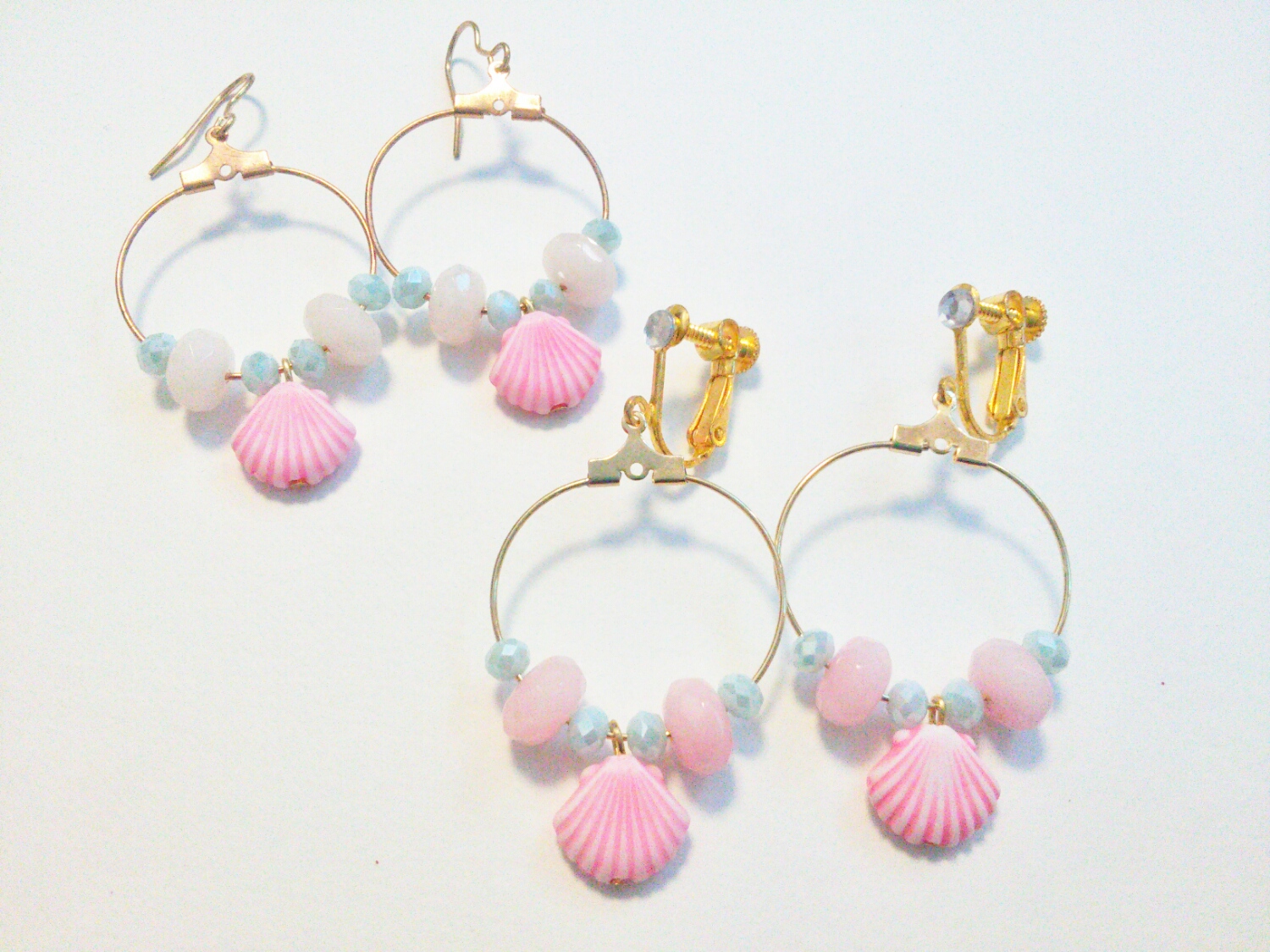 シェルのフープピアス&イヤリング。