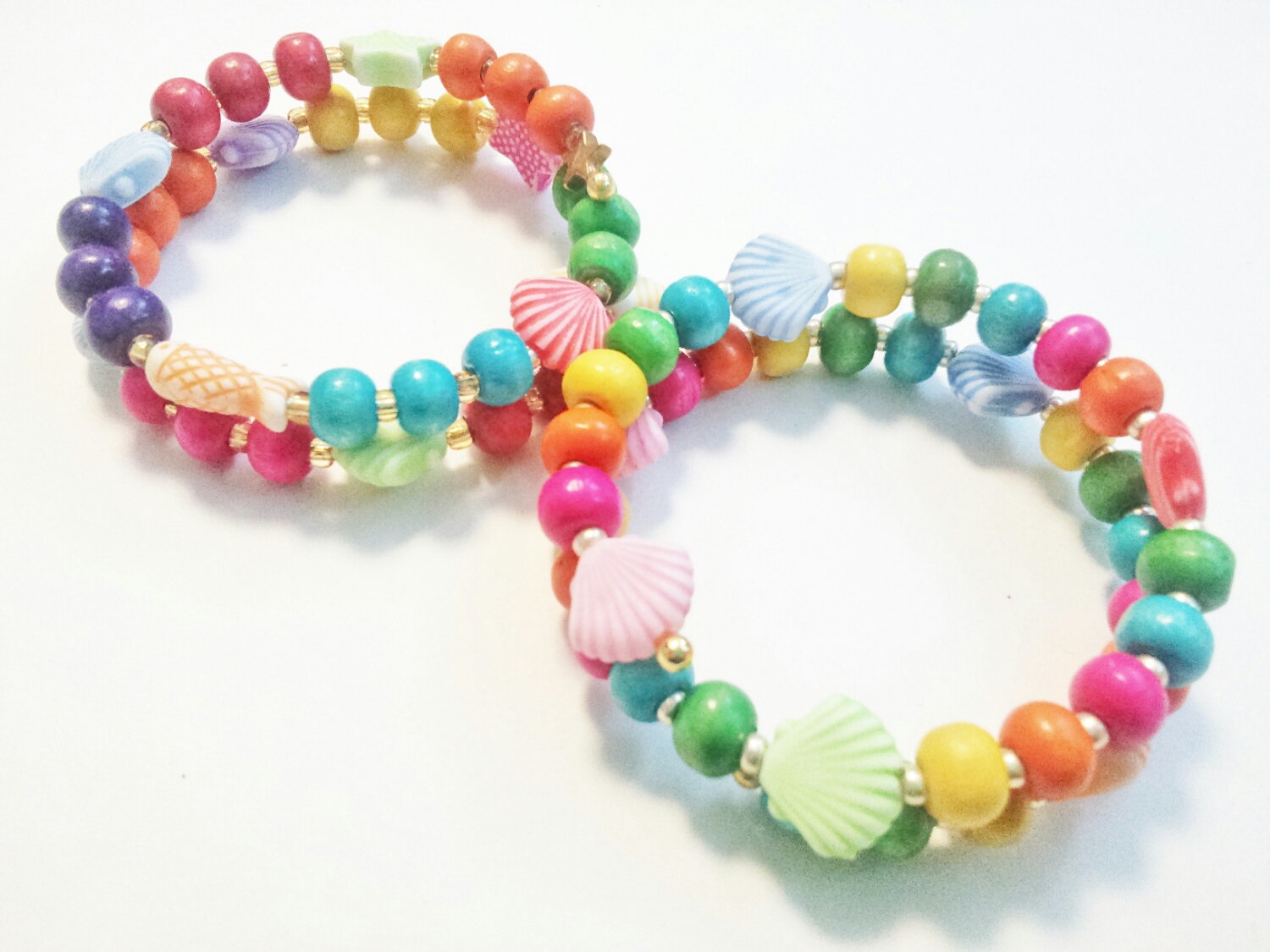 ウッドビーズのワイヤーブレス。